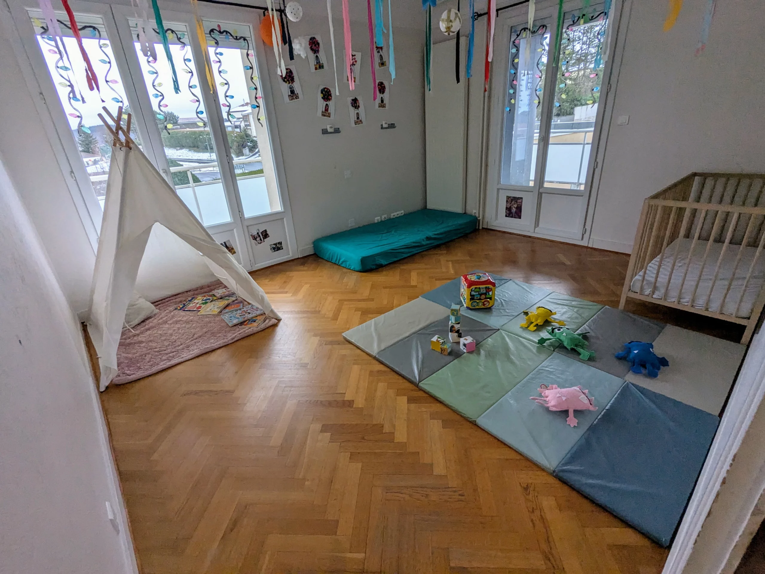 Nous disposons d’un grand espace de vie bien agencé, permettant aux enfants d’évoluer librement dans différents espaces dédiés aux jeux, au repos et aux activités.